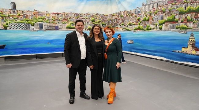 Ressam Alev Özas da “Bu resim aslında Cumhuriyetimizin 100. Yılı için yapılmış bir eser. Geçen sene 2023 imzalı. Atamıza bir armağan olsun demiştim. Bir kadın ressam olarak 50 metrelik İstanbul panoramik eserini bitirdim” diye konuştu.