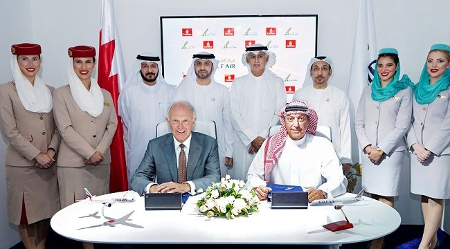 Bahreyn Airshow’un ilk gününde imzalanan anlaşma, geçtiğimiz yıl belirlenen iş birliği çerçevesinde her iki havayolu arasında büyüyen bir ilişkinin sinyalini verdi. Anlaşma Emirates Havayolu Başkanı Sir Tim Clark ve Gulf Air CEO’su Captain Waleed Al Alawi tarafından Gulf Air Yönetim Kurulu Başkanı Zayed R. Alzayani huzurunda imzalandı. İmza törenine her iki havayolunun üst düzey yönetim ekiplerinde yer alan isimler de katıldı.