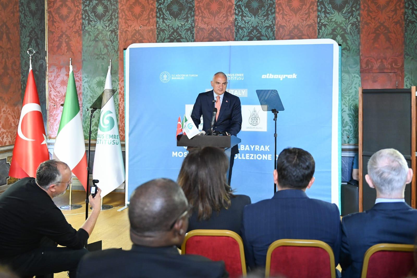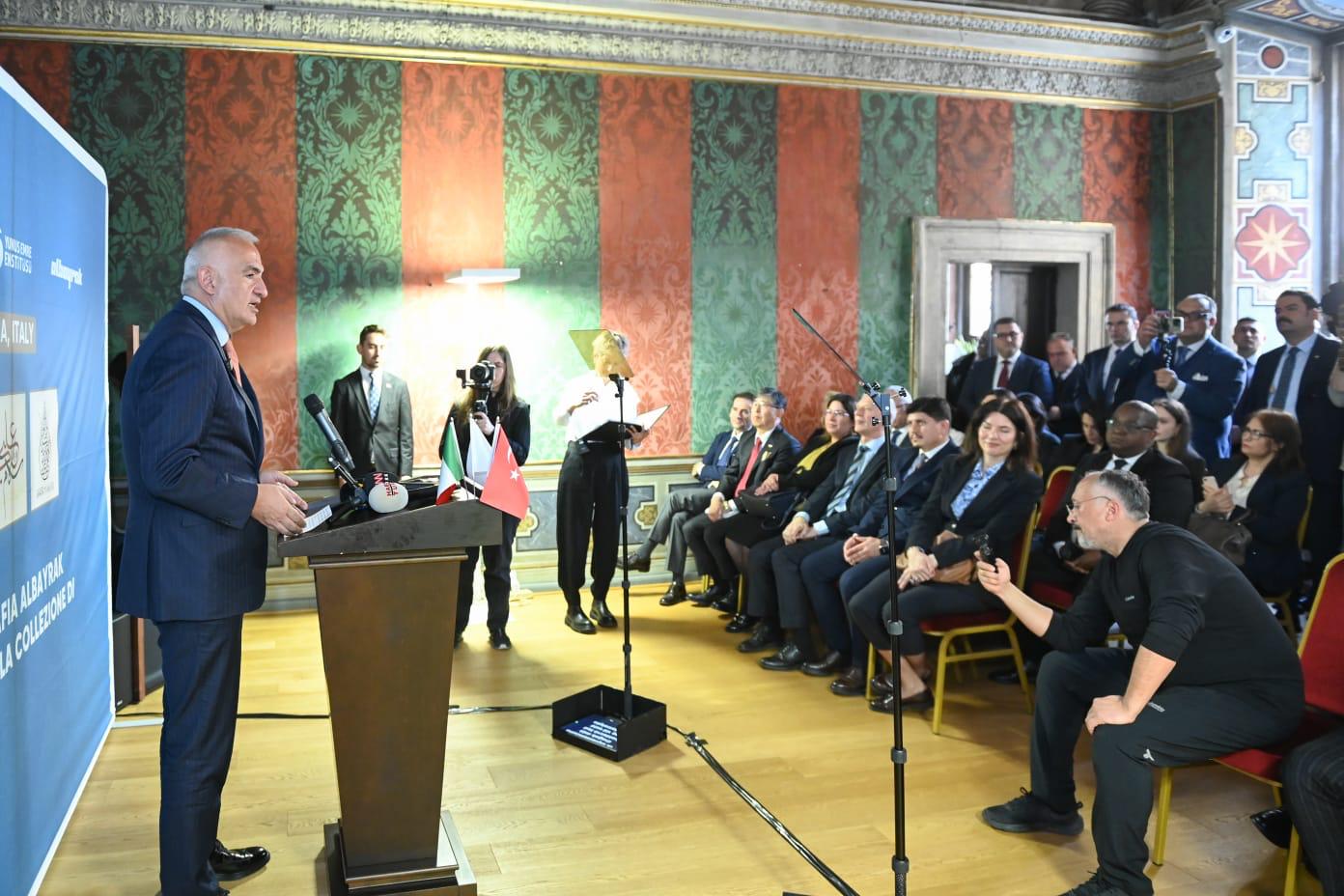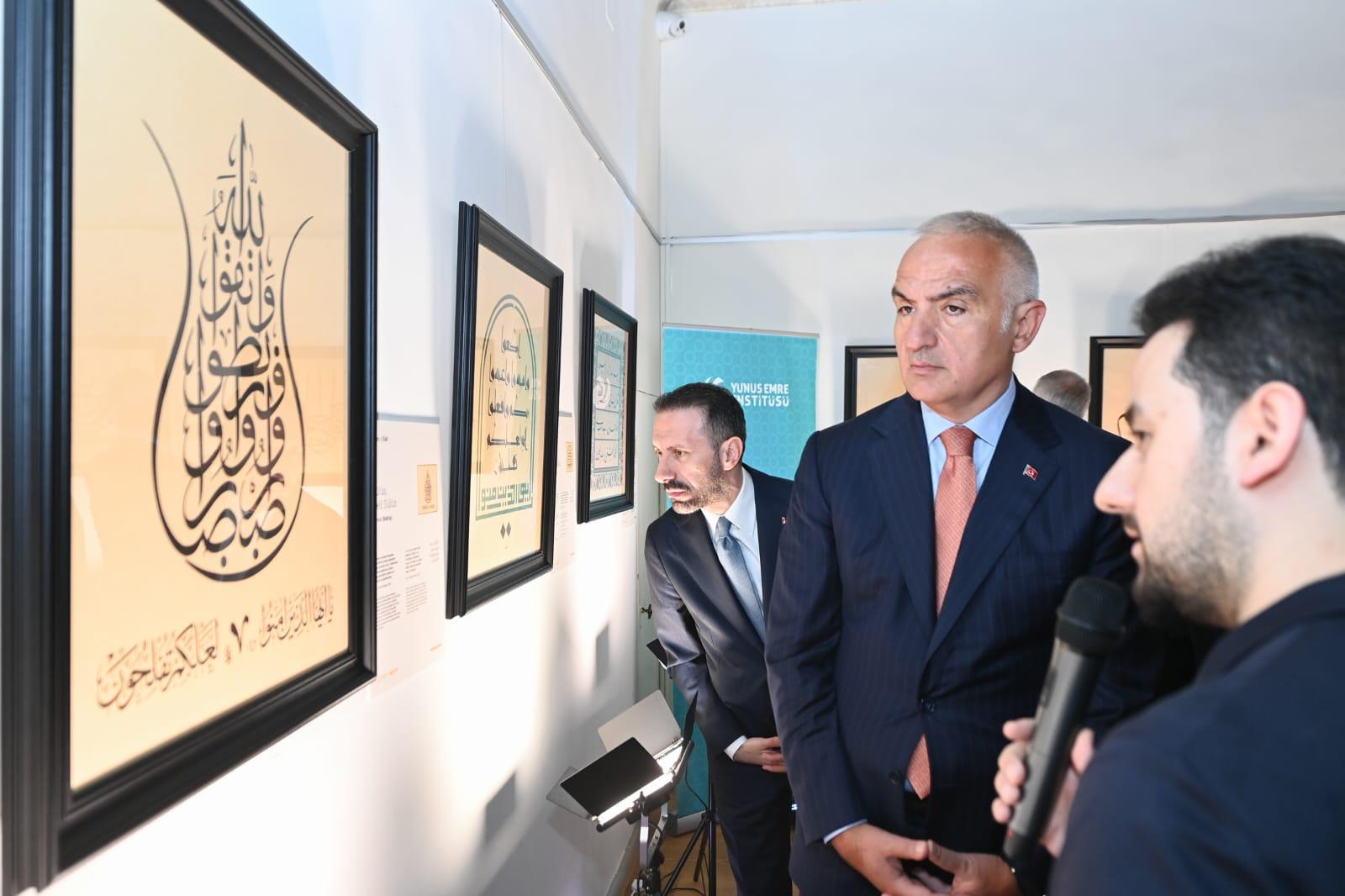 Serginin açılışında konuşan Kültür ve Turizm Bakanı Mehmet Nuri Ersoy, konuşmasında, "Hat sanatının büyülü dünyasının kapılarını Roma'da, İtalya'da sanatseverlere açıyor olmaktan büyük bir mutluluk duyuyorum. Geleneksel sanatların yaşatılması, geliştirilmesi ve dünyanın farklı coğrafyalarında tanıtılmasının, bakanlık olarak her zaman öncelikleri arasında yer aldığını dile getiren Ersoy, "Çünkü, bugün dünyanın farklı bölgelerinde insanların yaşadığı acılar, geleneksel sanatları ortaya çıkaran ruha her zamankinden daha fazla ihtiyaç duyulduğunu göstermektedir. Hoşgörüyü ve adaleti temel alan medeniyetimizin estetik bir ifadesi olan geleneksel sanatlarımız, aynı zamanda insanlığın bugün ihtiyaç duyduğu ruhu yansıtan bir özelliğe sahiptir. Şu anda açılışını gerçekleştirdiğimiz sergide yer alan hat örnekleri incelendiğinde de bu estetik anlayış çok net olarak görülür." diye konuştu.