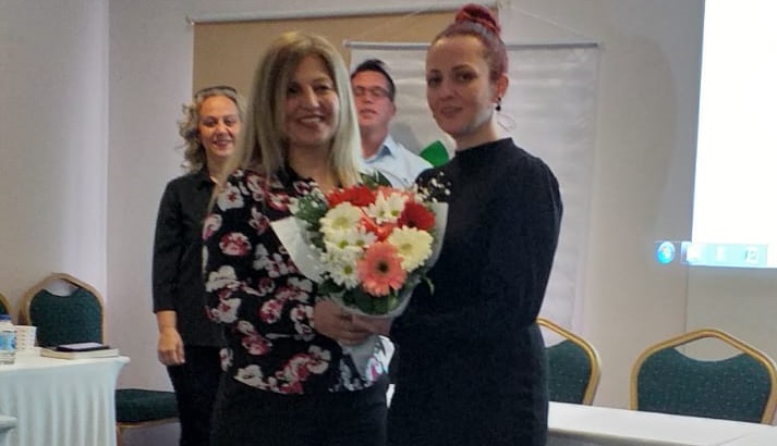 Eğitimin sonunda eğitime destek olan Grand YazıcıTurban Otel Executive Housekeeper Özlem NEMLİOĞLU KARAKAŞ'a MAHED Dernek Saymanı Muzaffere TUGAN tarafından bir teşekkür çiçeği sunuldu.