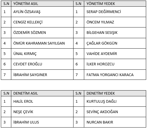 Yeni dönem Yönetim Kurulu listesi şu şekilde: