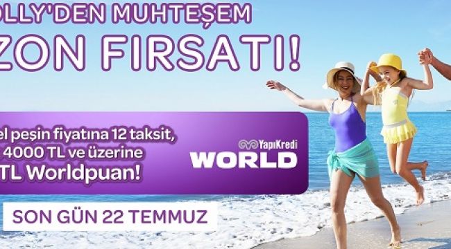 Her zaman müşteri memnuniyetini ön planda tutan, turizm sektörünün dinamik ve yenilikçi ismi JOLLY, tatil rotasını halen çizmemiş tatil severlere Türkiye’de ilk kez geçen sene başlatmış olduğu “Geçken Rezervasyon” kampanyasını yeniden başlattı. Üstelik Yapı Kredi WORLDCARD sahiplerine 200 TLWORLDPUAN hediyesi ile…