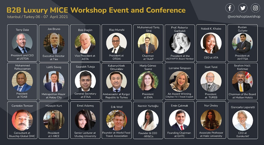 2021 yılının en önemli Turizm Çalıştayı 6-7 Nisan tarihleri arasında İstanbul’da gerçekleşecek.Dünyadaki otorite 14 Turizm STK Başkanının konuşmacı olarak katılacağı Turizm Çalıştay ve Konferansı İstanbul Pullman Otelde gerçekleşecek.Dünyada ilk defa bu denli önemli şahsiyetin bir araya geleceği çalıştaya, birçok ülkeden 250’ye yakın Tur Operatörü de katılım gösterecek.