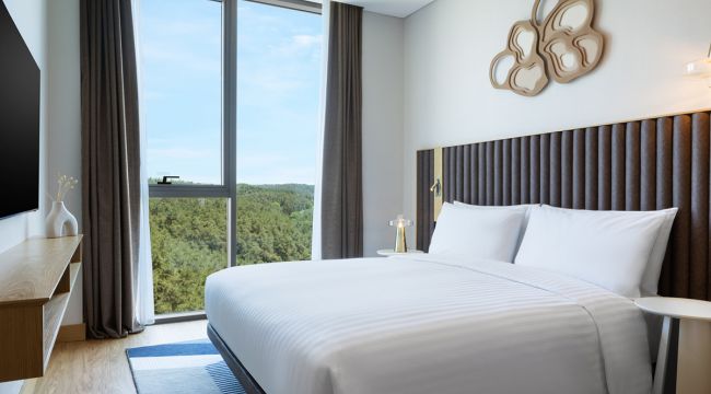 Otel; şehir manzaralı veya yemyeşil Belgrad Ormanı’na bakan, dört farklı oda tipiyle tasarlanmış 200 ferah daire sunuyor. Her dairede ayrı yatak ve oturma alanları, tam donanımlı mutfak, yemek bölümü ve gün ışığını içeri davet eden boydan boya camlar yer alıyor. İster yalnız ister çift olarak ya da ailecek seyahat edin; burada ev konforunda bir özgürlük ve Marriott kalitesinde bir hizmet sizi bekliyor.