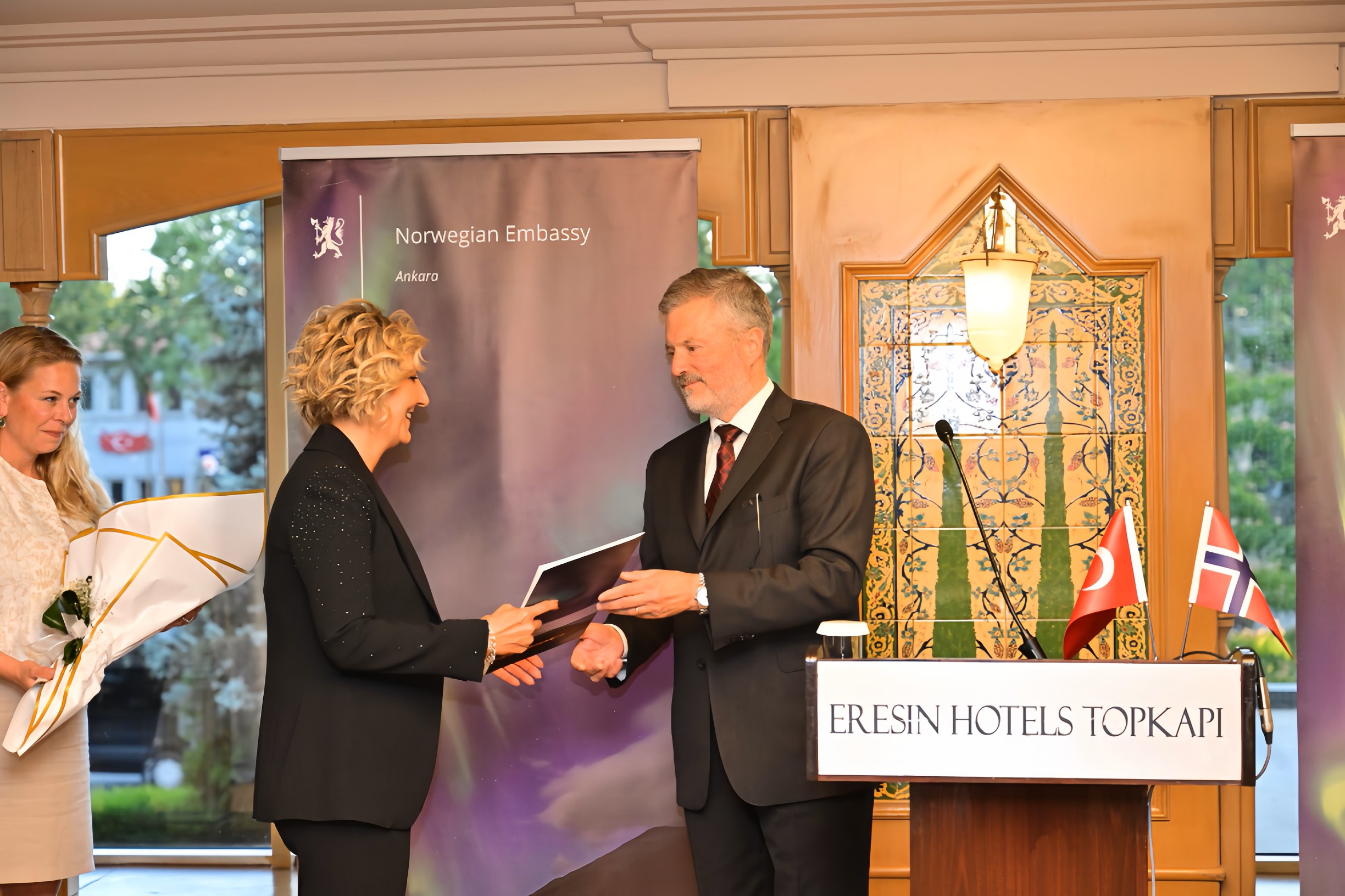 Resepsiyonda konuşan Büyükelçi Gaarder, bu önemli görevi kabul ettiği için Müberra Eresin’e teşekkür ederek şunları söyledi: “Eresin, etkileyici bir özgeçmişe sahip. Detaylı bir değerlendirme sürecinin ardından, resmi mercilerin onayıyla bu göreve atandı. Hem konsolosluk görevlerinde hem de iş dünyasında Norveç’i başarıyla temsil edeceğine inanıyoruz.”
