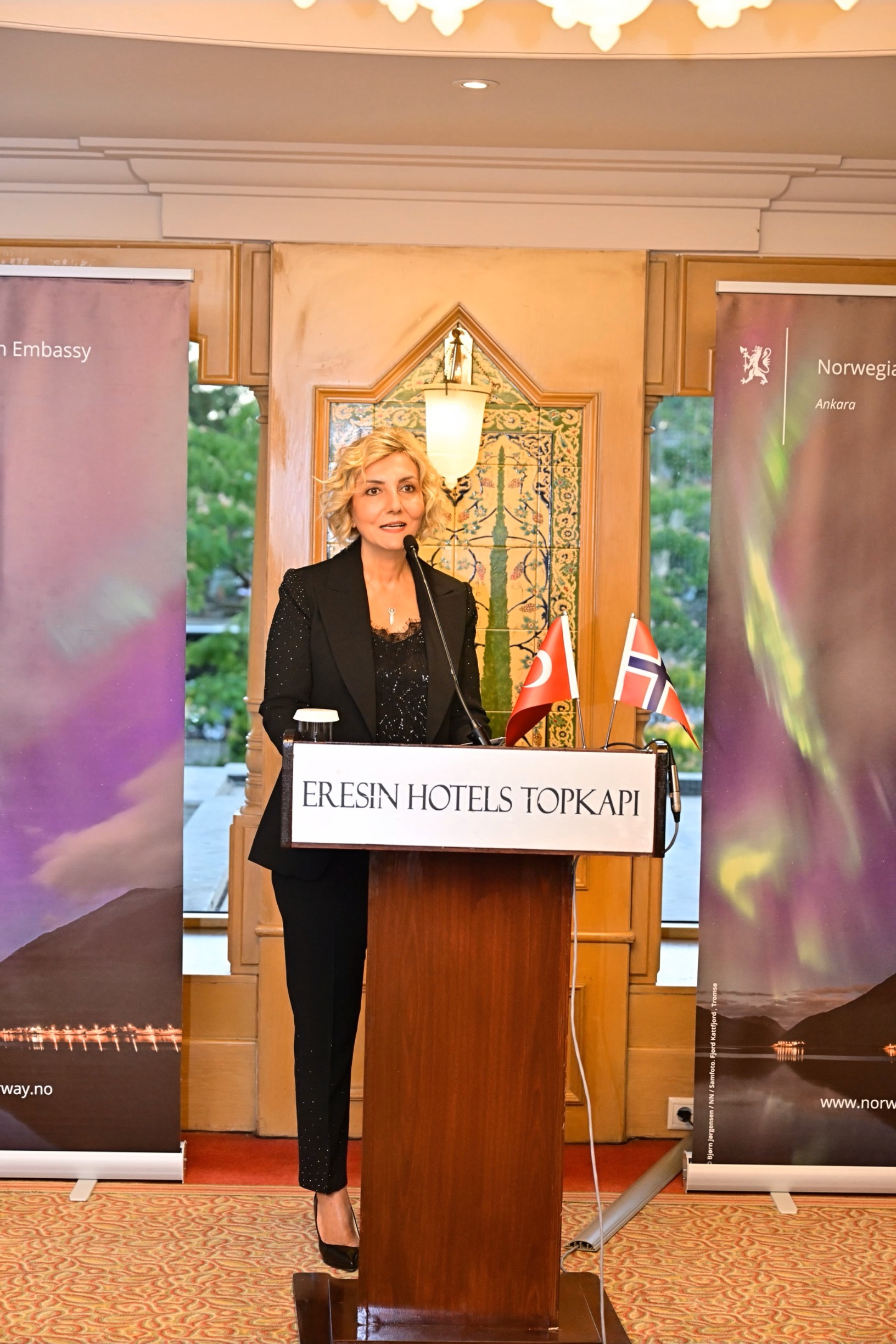 Norveç’in İstanbul Fahri Konsolosu Müberra Eresin ise konuşmasında şunları söyledi: “Norveç ile Türkiye arasında 100 yılı aşkın güçlü ilişkiler bulunuyor. Fahri Konsolosluk görevim sadece resmi süreçlerle sınırlı olmayacak; kültürel iş birlikleri, eğitim projeleri ve insan ilişkilerinin geliştirilmesi için de çalışacağım. Norveçli turistlerin Türkiye’ye olan ilgisi her geçen yıl artarken, Norveç de Türk gezginler için cazip bir destinasyon haline geliyor. Ticarette ise enerji, denizcilik, otomotiv ve tekstil gibi birçok alanda sağlam ortaklıklarımız mevcut.”