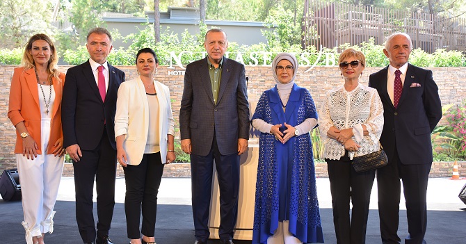 Cumhurbaşkanı Recep Tayyip Erdoğan ve eşi Emine Erdoğan otelin girişinde NG Kurucu Başkanı Nafi Güral ve eşi Gülsüm Güral, NG Kütahya Seramik Yönetim Kurulu Başkanı Erkan Güral, NG Hotels Yönetim Kurulu Başkanı Hediye Güral, Kütahya Porselen Yönetim Kurulu Başkanı Sema Güral Sürmeli ve Kütahya Porselen Yönetim Kurulu Başkan Yardımcısı Gülden Güral ile Gürok Grubu Yönetim Kurulu Başkanı Rıza Güral, Boliş plastik ve Kimya Sanayi Yönetim Kurulu Başkanı Sevim Güral Olgun tarafından karşılandı.. NG Phaselis Bay Otel’in resmi açılışında Cumhurbaşkanı Erdoğan’a, eski Başbakanlardan Binali Yıldırım, Kültür ve Turizm Bakanı Mehmet Nuri Ersoy ile Sanayi ve Teknoloji Bakanı Mustafa Varank ve Antalya Valisi Ersin Yazıcı da eşlik etti.