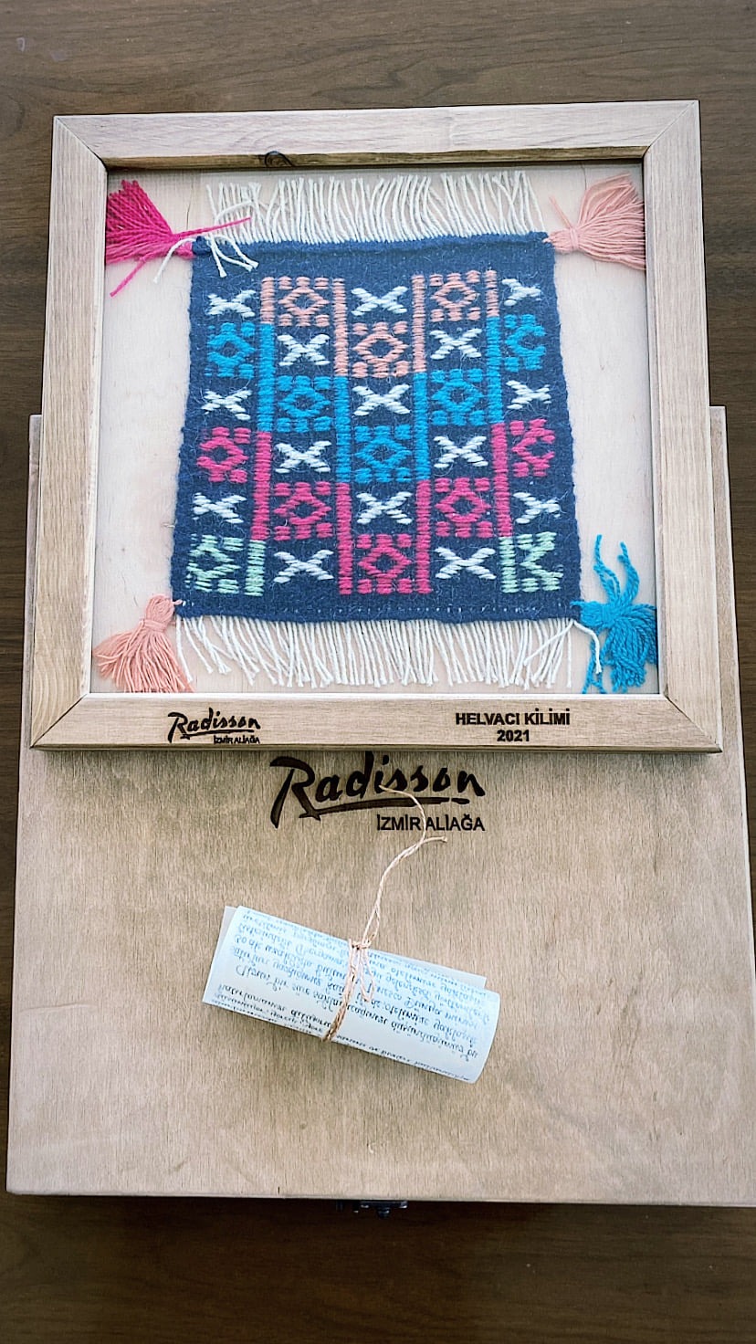 Radisson Hotel İzmir Aliağa aaçılış sürecinde bölge halkına destek olmak ve geleneksel el sanatlarını tanıtmak adına 500 yılı aşkın tarihi geçmişe sahip ‘Helvacı Kilimi” ni yeniden hayat bulması için yöre kadınları ile birlikte çalışmalar yapan ve aynı zamanda Unesco Dünya Mirası listesinde yer alan Bergama’ya özgü tarihi geleneksel yöntemlerle imal edilmiş parşömen kâğıdını da otel açılış mektubu olarak tasarlatıp, tarihi Helvacı Kilimi ile birlikte konuklarına armağan ederek, açılış sürecindeki başarılı pazarlama ve halkla ilişkiler faaliyetlerinden dolayı Doğu Avrupa, Rusya, Türkiye Radisson Otelleri halkla ilişkiler projeleri arasında “Örnek Çalışma: En iyi Proje” seçilmiştir.