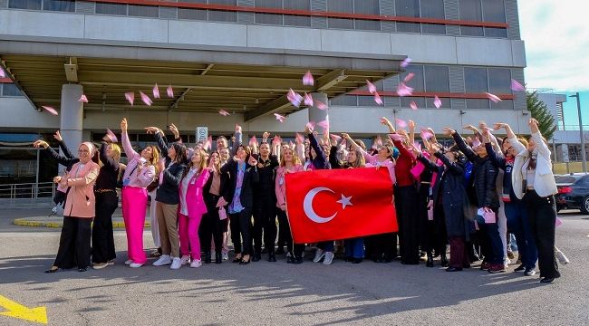 Dünya Havacı Kadınlar Haftası programı, ISG Airport Otel önünde pembe renkli kağıt uçakların uçurulmasıyla sona erdi.