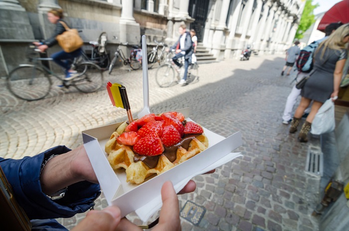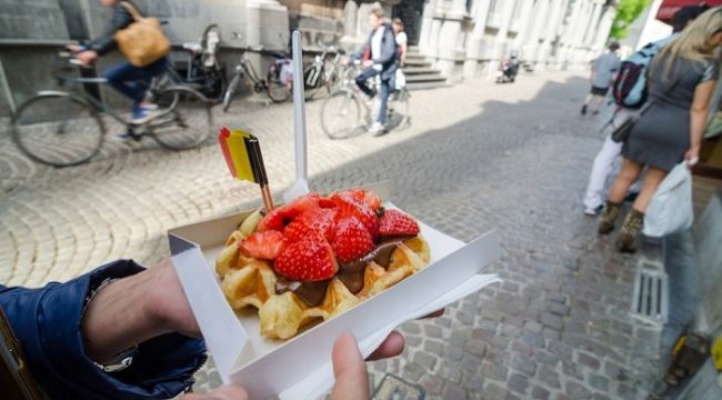 Brüksel-Patates kızartması cenneti olarak tabir edebileceğimiz Brüksel sokaklarında külahta patates kızartmaları satılıyor ve sokakları turlarken neredeyse tüm turistlerin elinde külahlar görebilirsiniz. Sos olarak dilediğiniz miktarda ketçap ve mayonez alabiliyorsunuz ve elinizde o külah varken Brüksel’de gezmenin tadı iki katına çıkıyor. Brüksel sokaklarına adım attığınızda buram buram kokusuyla sizi büyüleyecek bir diğer lezzet ise waffle.