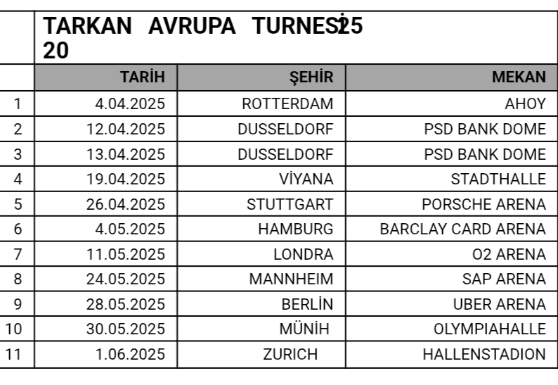 Avrupa Turnesi'ne Rotterdam’da etkileyici bir açılışla başlayan Megastar Tarkan, Düsseldorf, Stuttgart, Hamburg ve Londra’nın ardından 24 Mayıs’ta Mannheim’daki SAP Arena’da sahnedeydi. Turnenin yedinci konserinde yine enerjisi, sahne hakimiyeti ve güçlü repertuvarıyla izleyenleri mest etti.