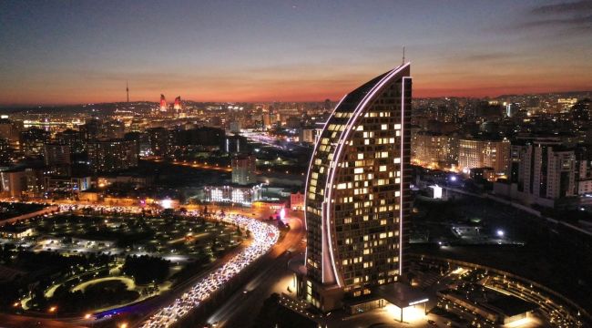 33 katlı The Ritz-Carlton, Bakü; çoğu özel balkonlu ve teraslı 190 geniş odası, eşsiz süitleri, ve 608 metrekarelik bir yaşam alanı, özel oturma odası, resmi yemek odası ve spor salonuna sahip Presidential Suiti ile şehrin en büyük suiti olan otelleri arasında yer alıyor.