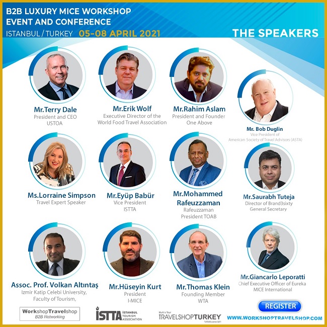 Dünyanın önemli turizm pazarlarının yöneticileri TravelShop Turkey ve İstanbul Turizm Derneği işbirliğiyle düzenlenecek olan dev etkinlik ile İstanbul’da buluşacaklar.Dünyadaki Turizm otorileri ve MICE Turizmi Profesyonelleri Luxury MICE B2B Çalıştay ve Konferansıyla 05-08 Nisan 2021 tarihleri arasında İstanbul Pullman Hotel’de ağırlanacak.Etkinliğe katılım gösteren turizm firmaları yeni pazarlara ulaşarak market segmentlerini geliştirme ve gelirlerini arttırma şansı yakalayacaklar.