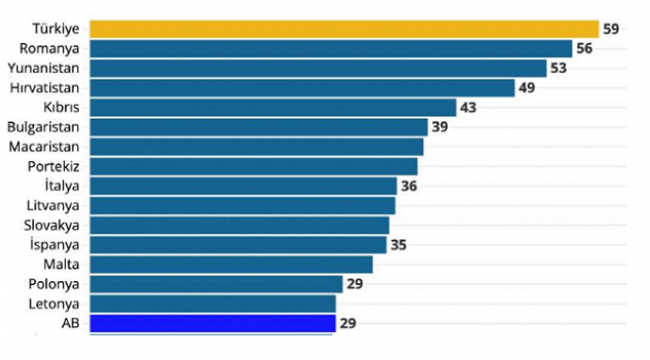 AB İstatistik Ofisi Eurostat'ın verilerine göre Türkiye’de her 100 kişiden 59’u maddi yetersizlik nedeniyle tatile çıkamıyor.2022'de ise durumun ne olduğu henüz belli değil.